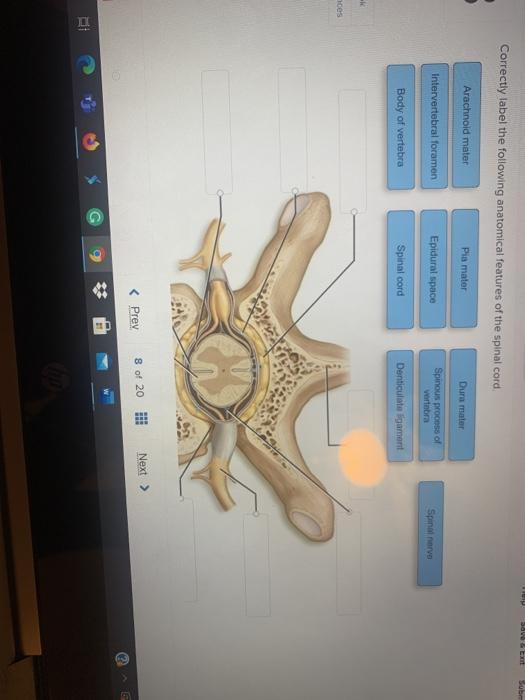 44 correctly label the following anatomical features of the spinal cord